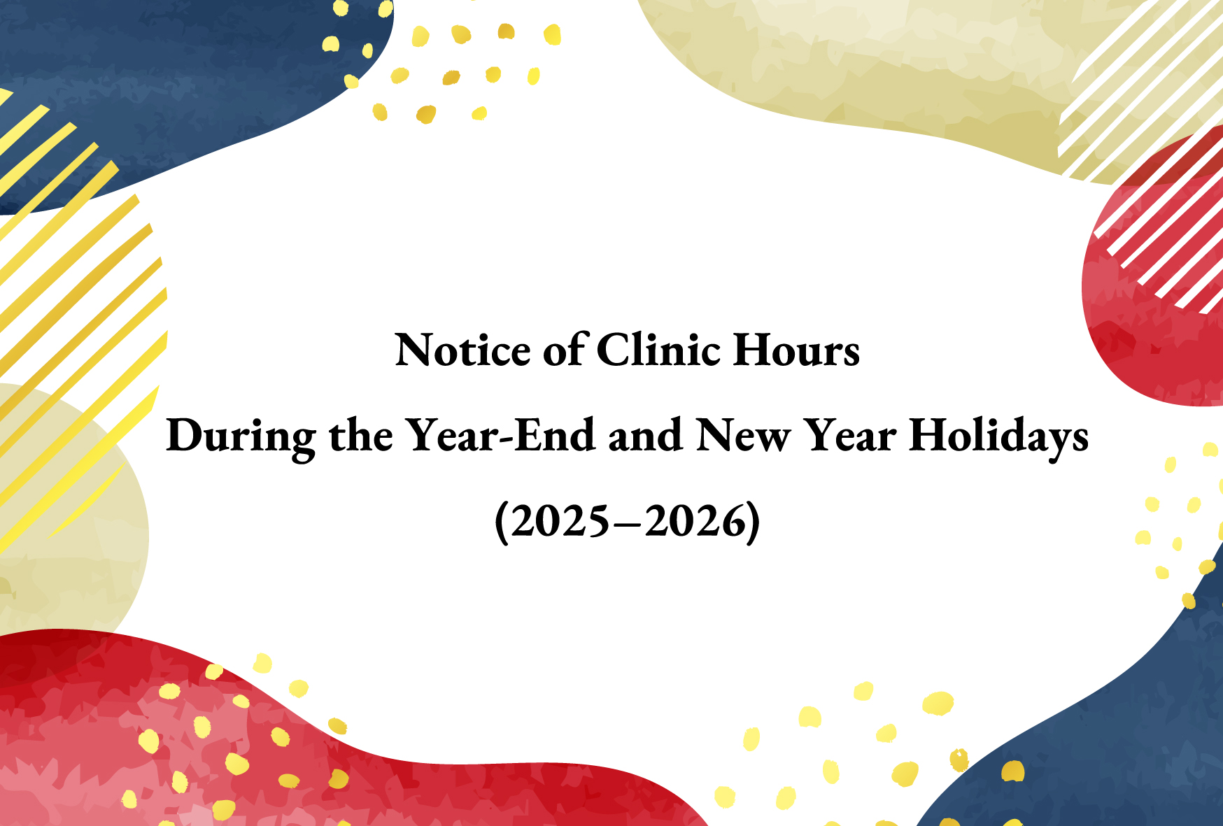 Notice of Clinic Hours During the Year-End and New Year Holidays (2025–2026)